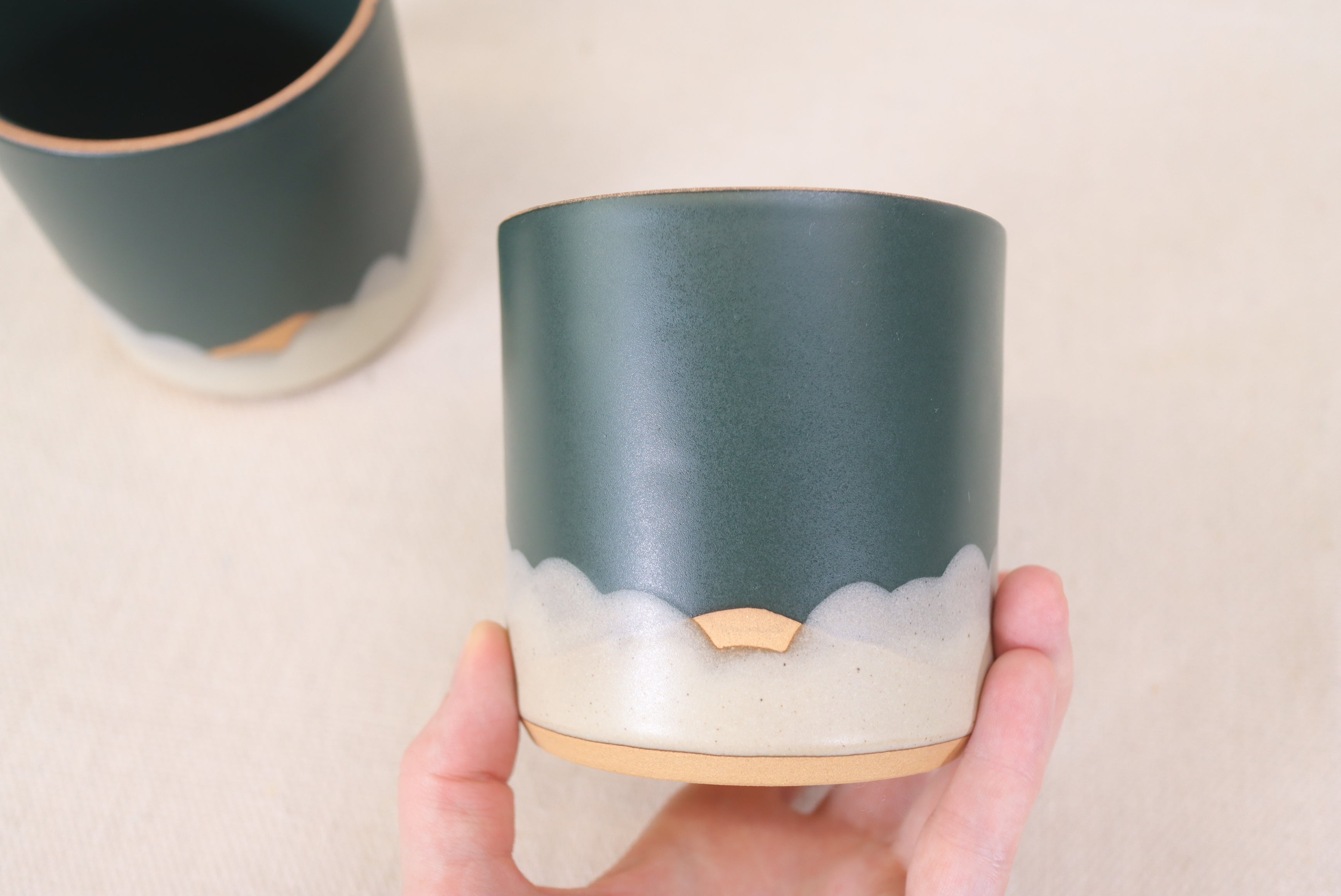 Glazed in our signature cloud design with two glaze colors, each cup will look unique. As all of our pieces are handmade, minor variations in shape and finish are normal. Small variations are to be celebrated for giving each piece it's own character, and are not considered imperfections.