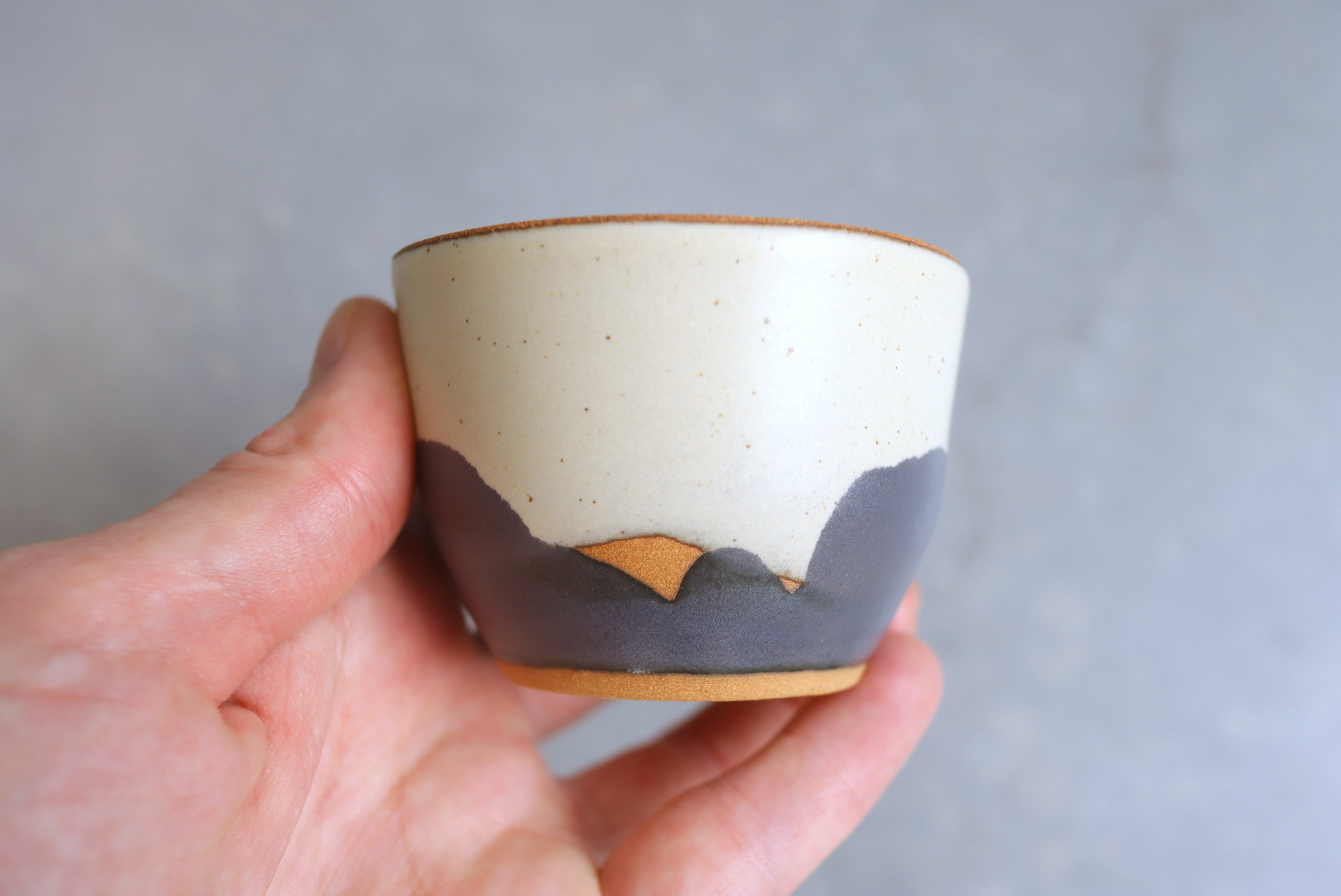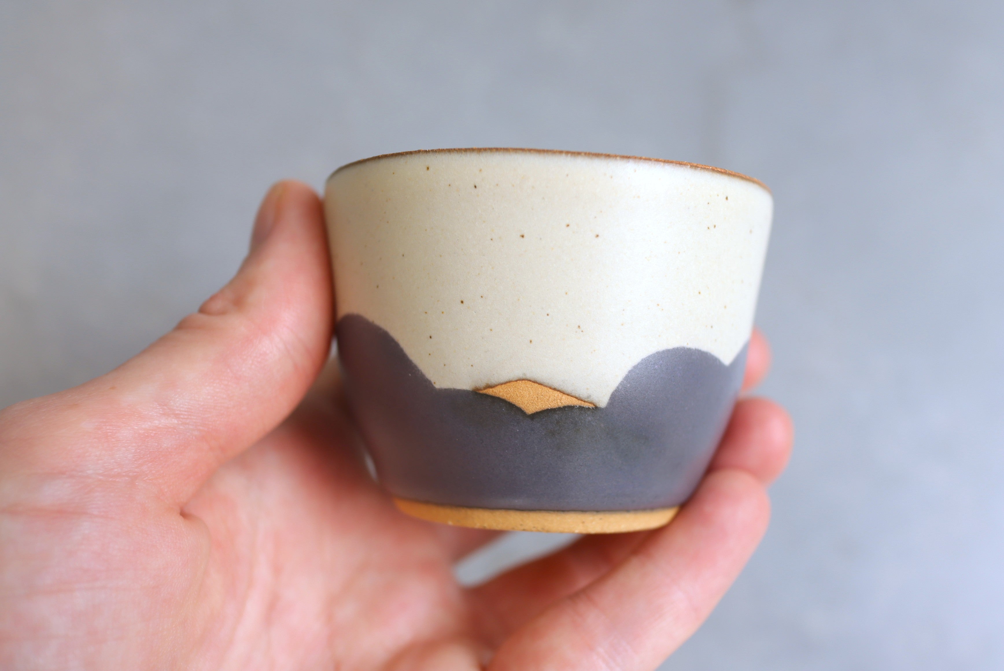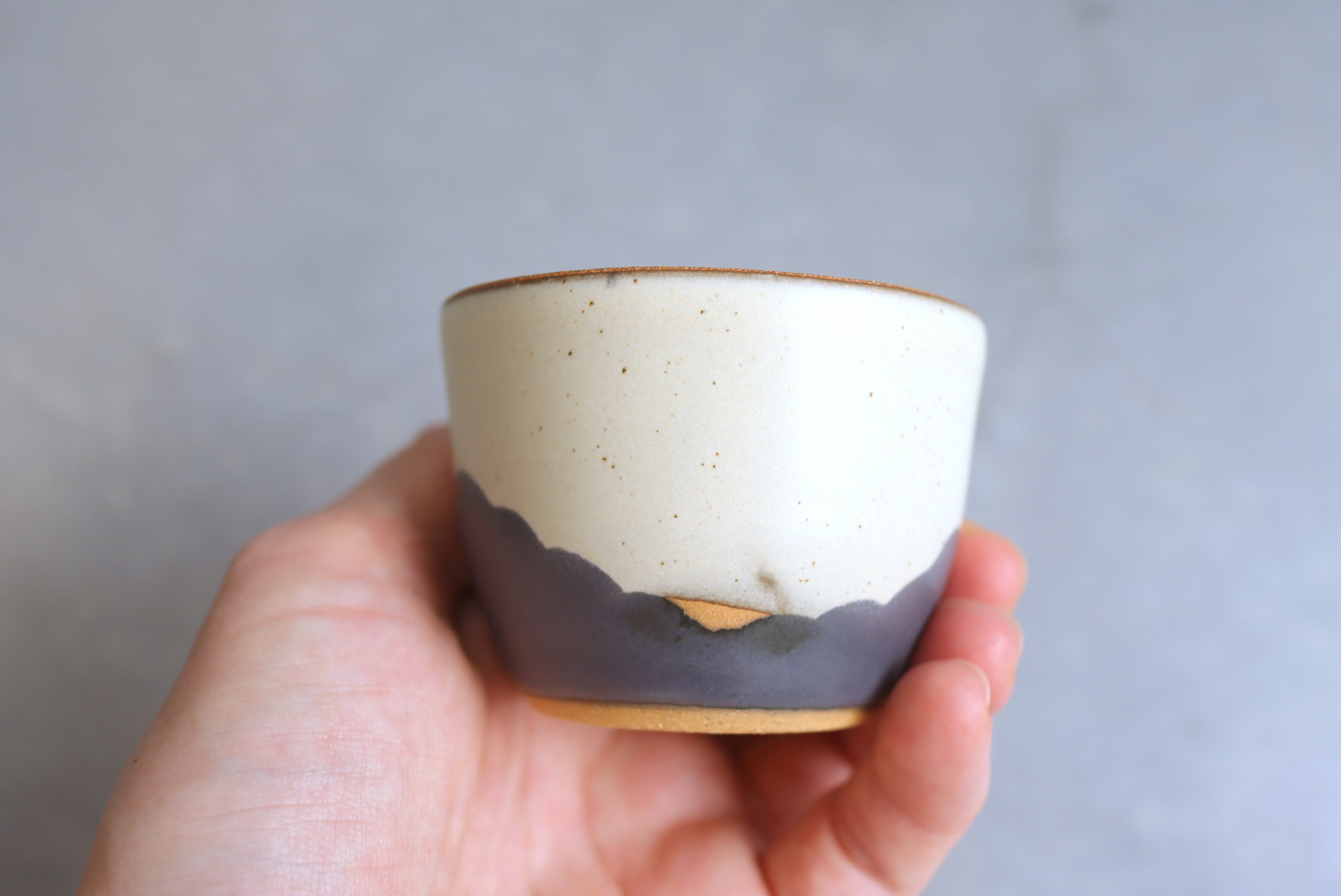 All cups are handmade and have variations in shape, color, and glaze pattern. Small variations are to be expected: a tiny dimple in the glaze, or a little spot of the secondary color on top of the primary color is not considered seconds.