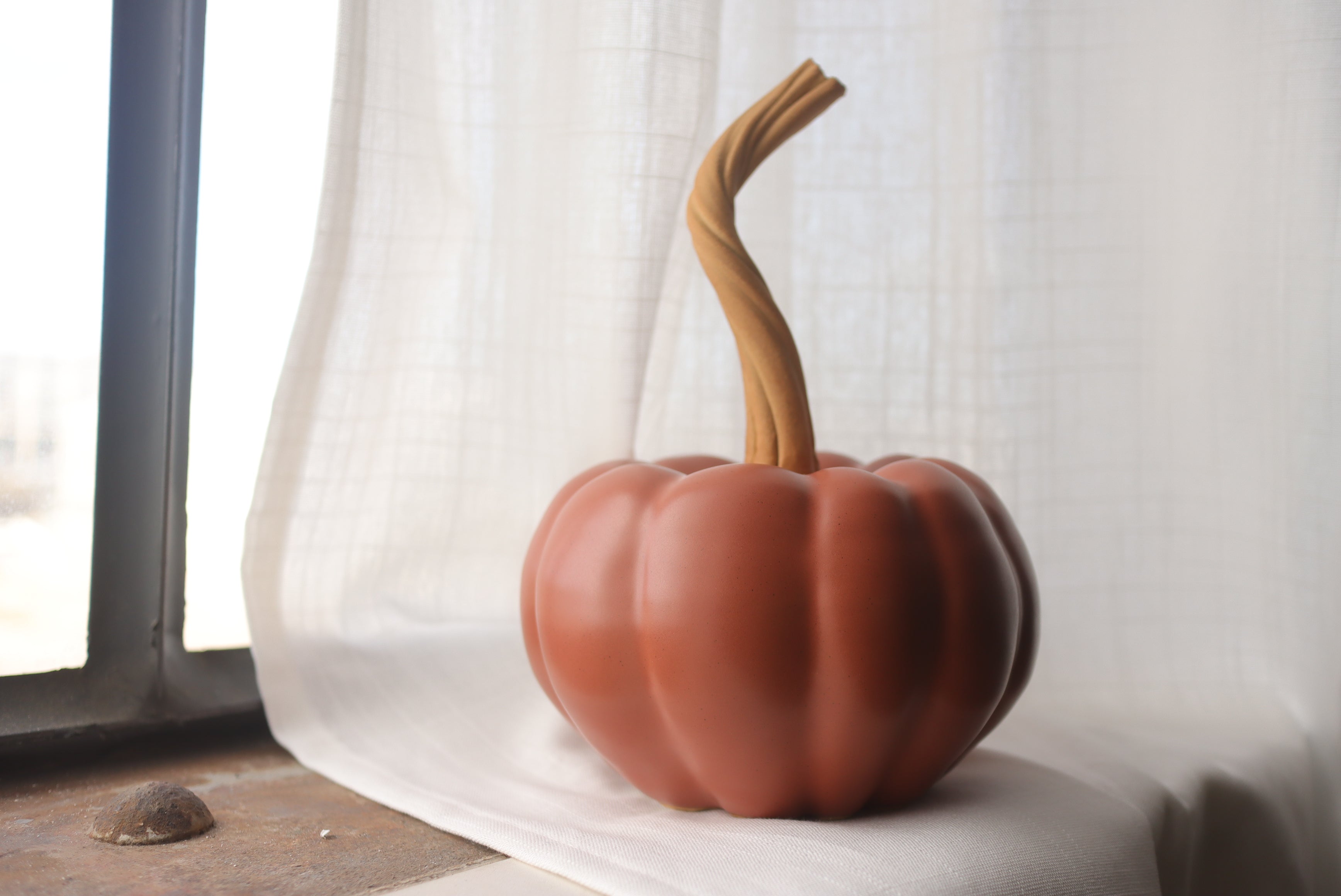 This pumpkin made by Sven on the wheel and then sculpted to mimic the smooth and beautiful lines of Halloweens favorite gourd. It is glazed in our Fox glaze, and it will never rot! This pumpkin sculpture can be used again and again to grace your mantle with a bit of autumn charm.