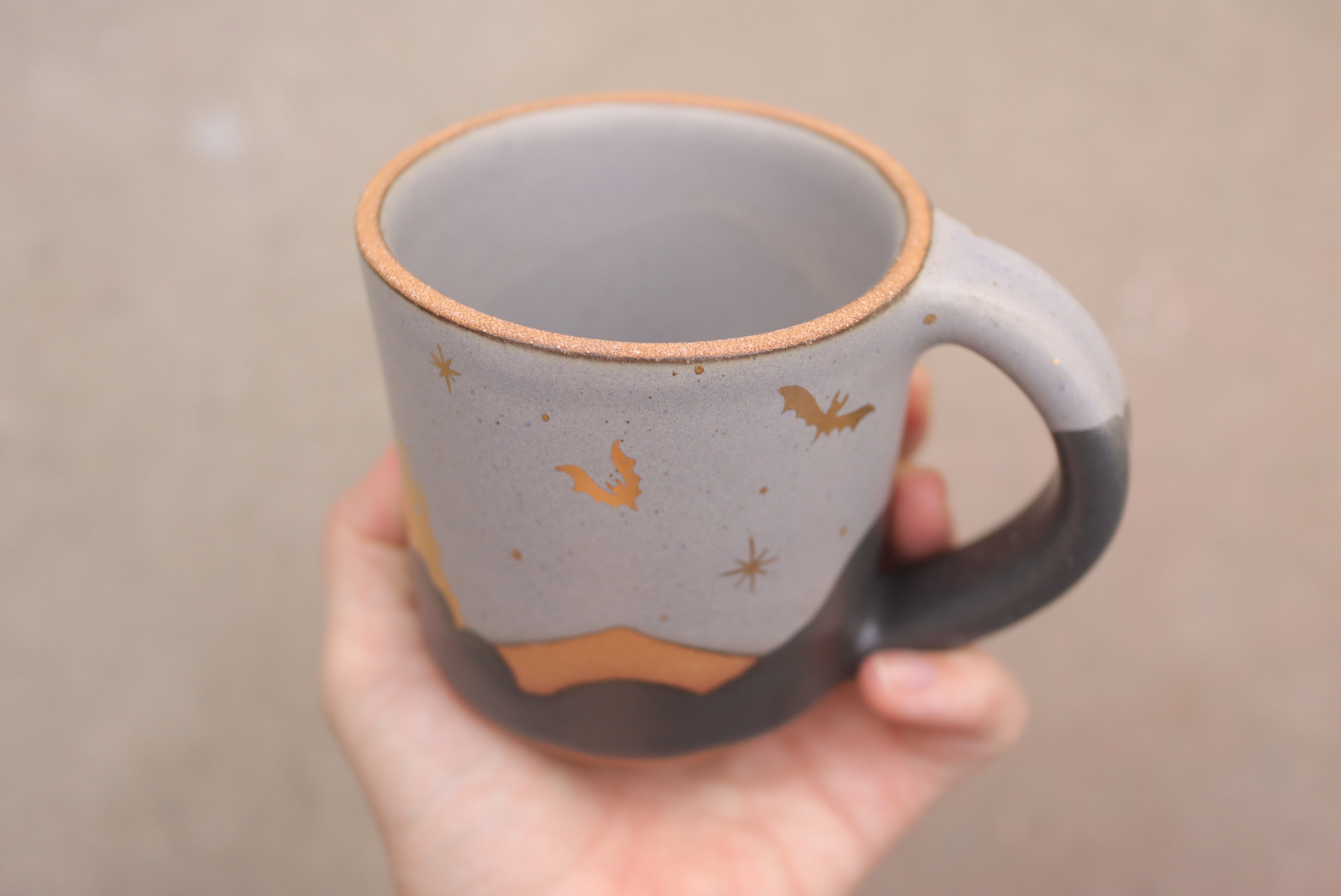 All cups are handmade and have variations in shape, color, and glaze pattern. Small variations are to be expected: a tiny dimple in the glaze, or a little spot of the secondary color on top of the primary color is not considered seconds.