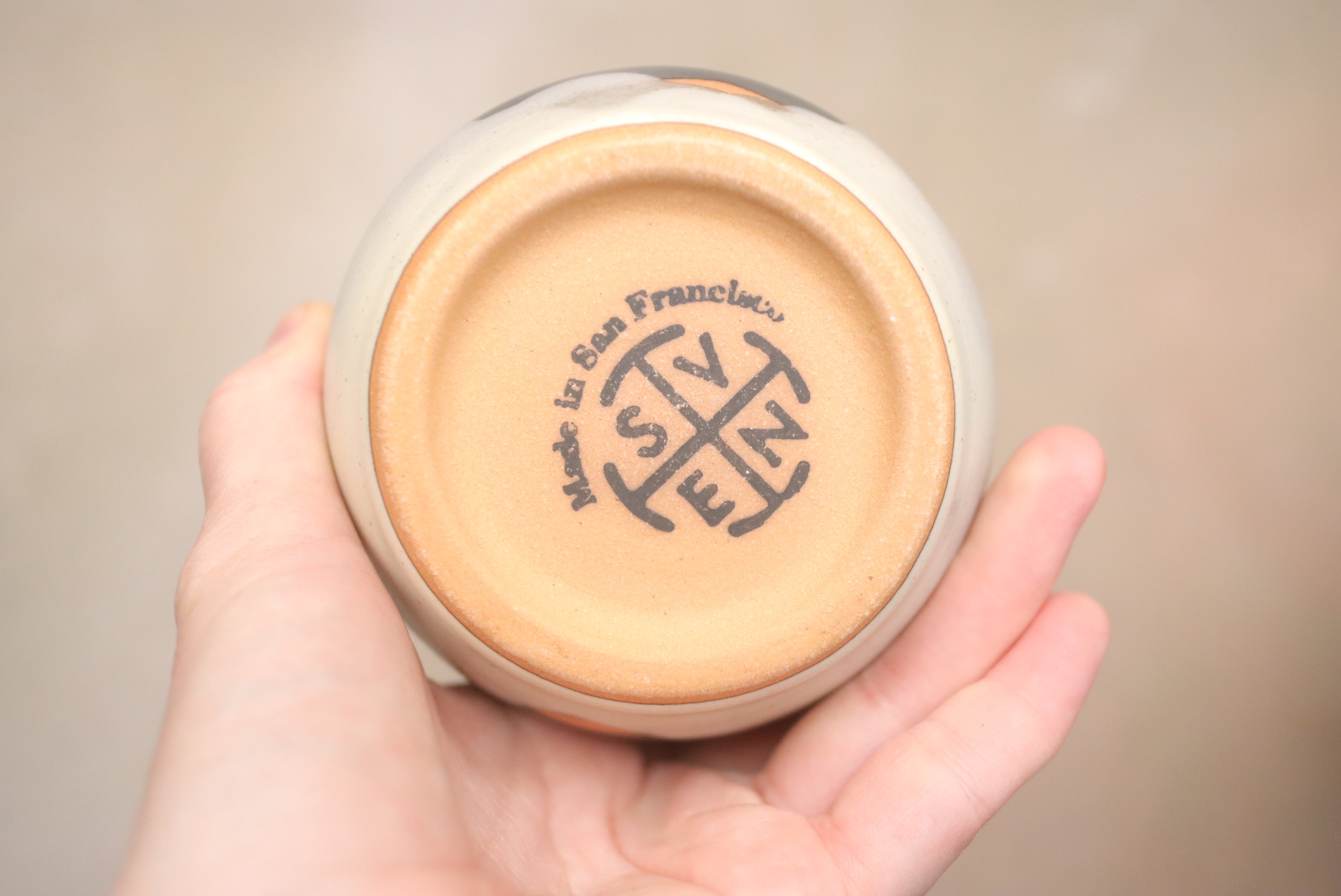 All of our pottery is made by the two of us in San Francisco. Our glazes are formulated and made in-house, using non-toxic ingredients. No lead has ever been used in any of our glazes, nor in our equipment.