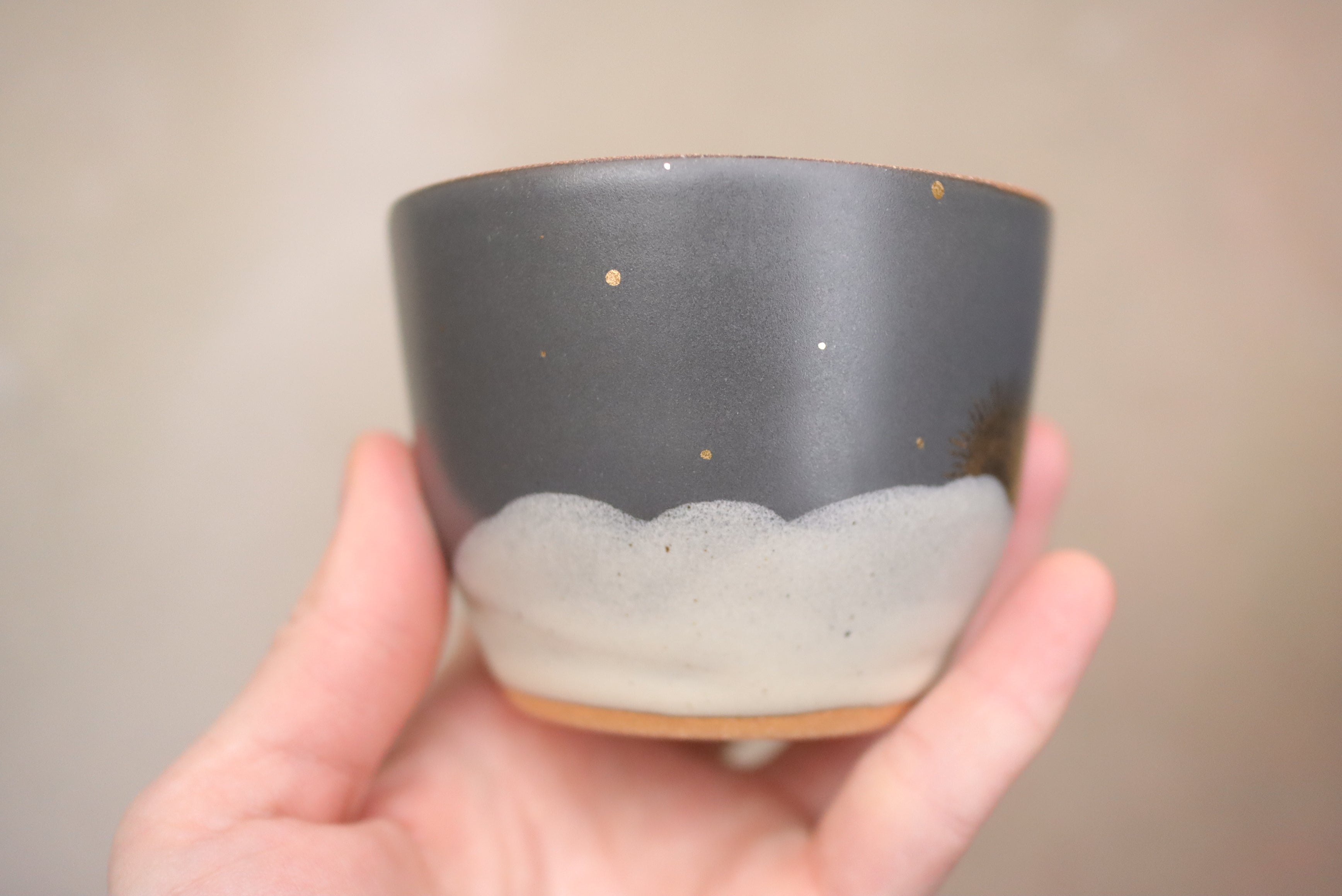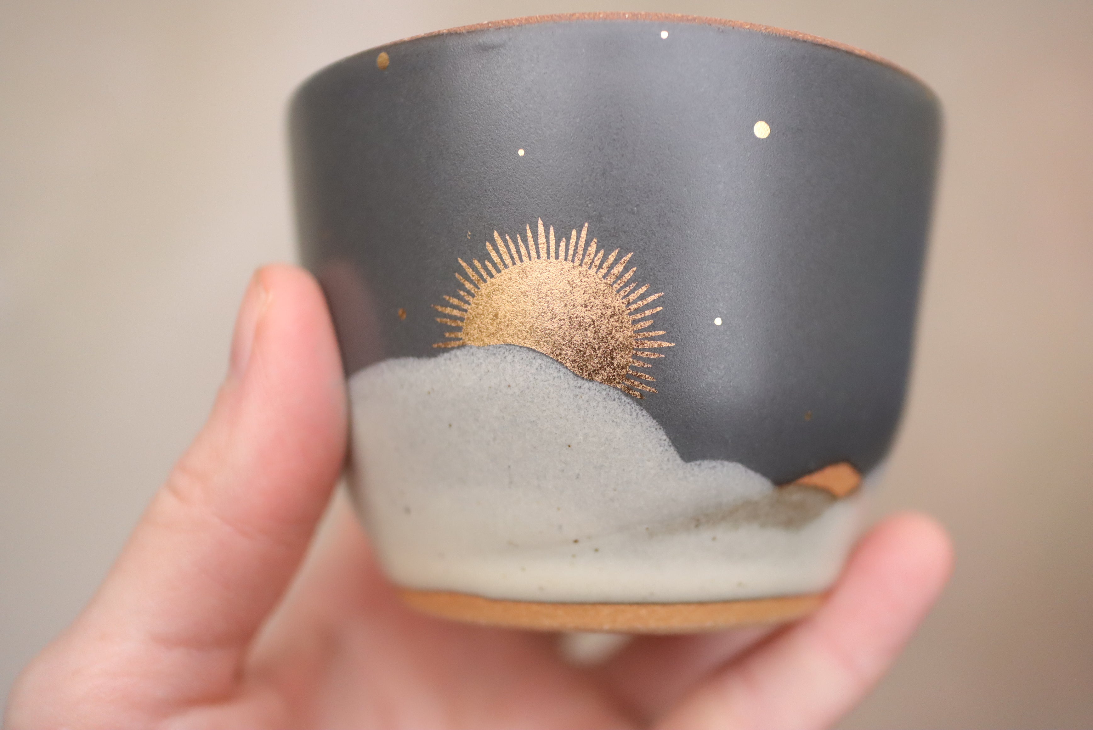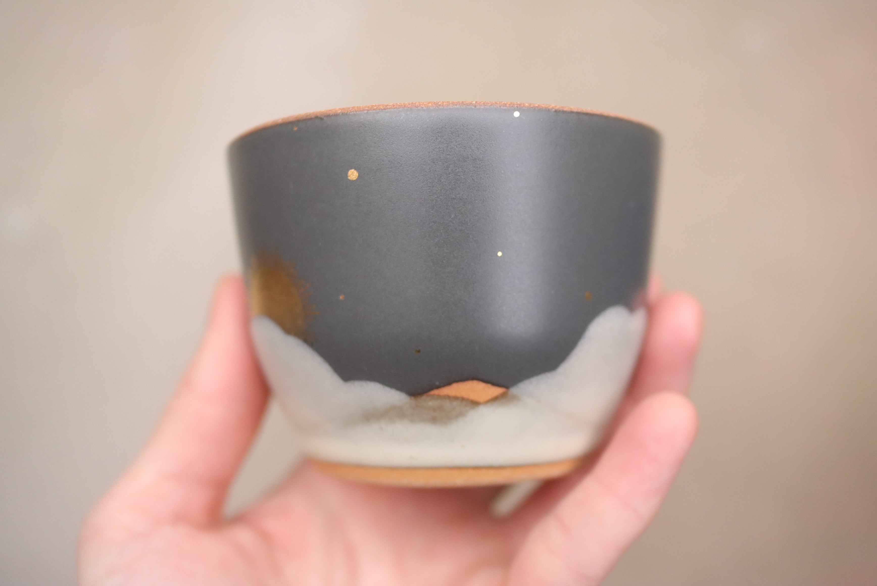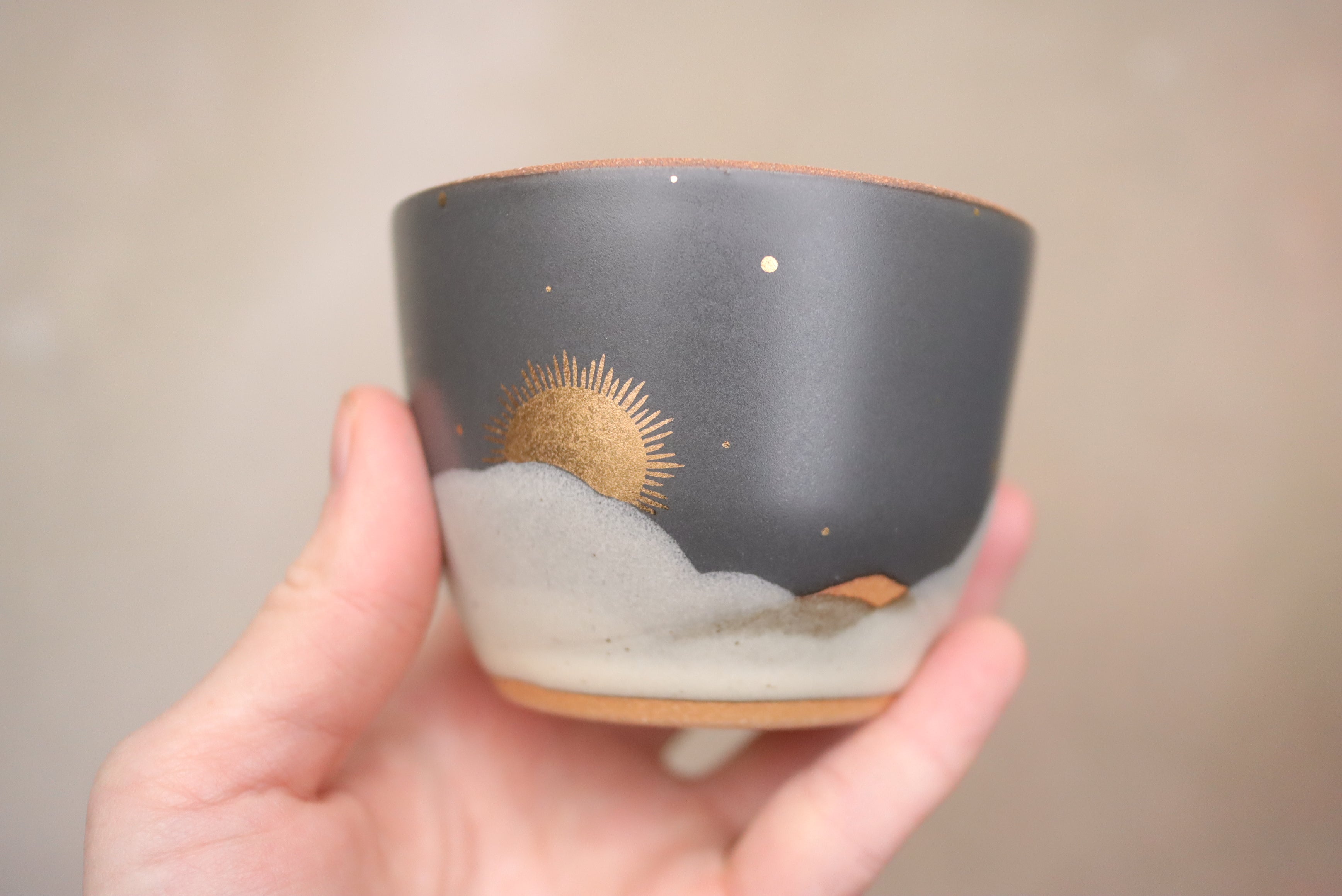 6 oz Midnight Cappuccino Cup with Hand Painted 22k Gold Lustre Sun