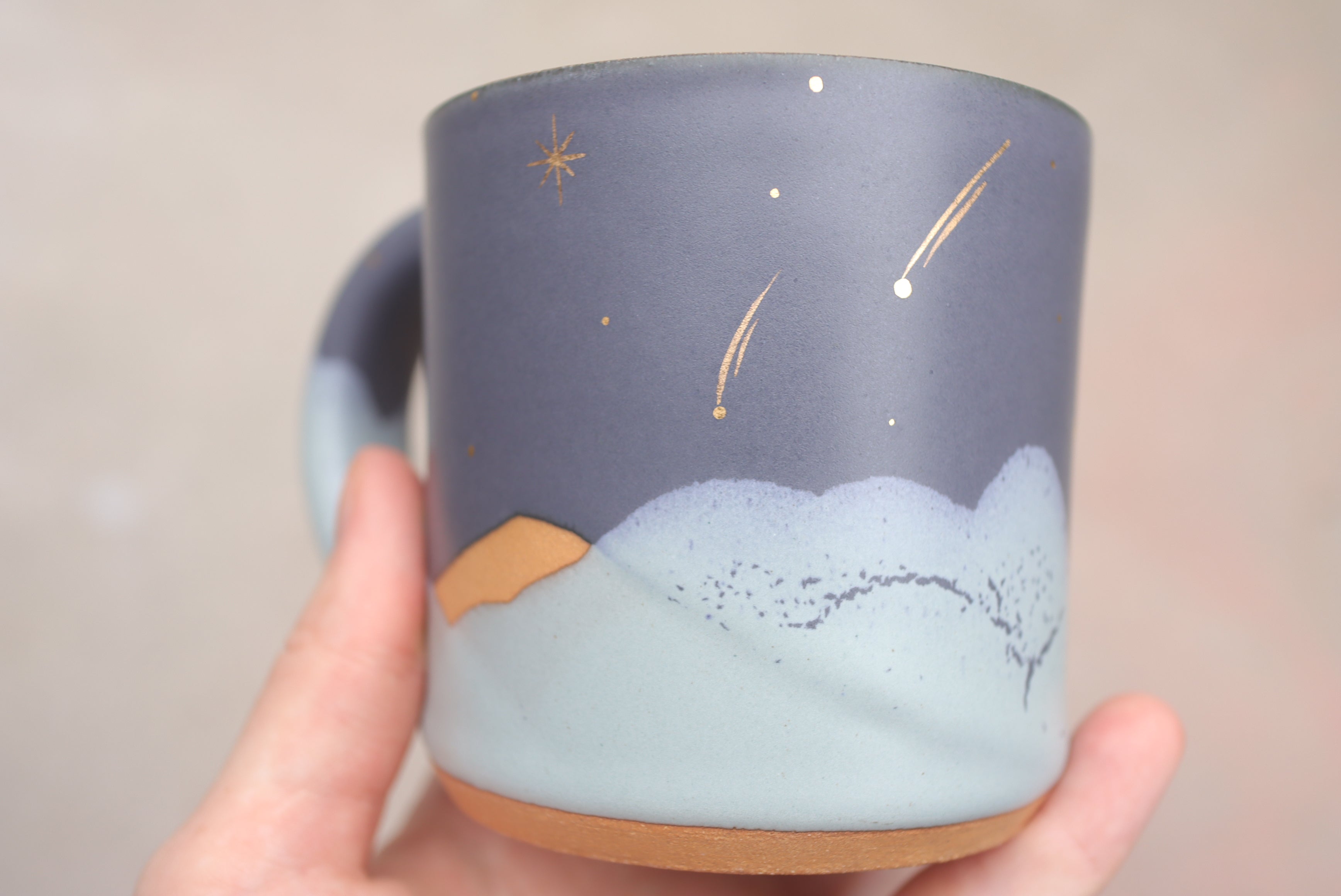 All cups are handmade and have variations in shape, color, and glaze pattern. Small variations are to be expected: a tiny dimple in the glaze, or a little spot of the secondary color on top of the primary color is not considered seconds.