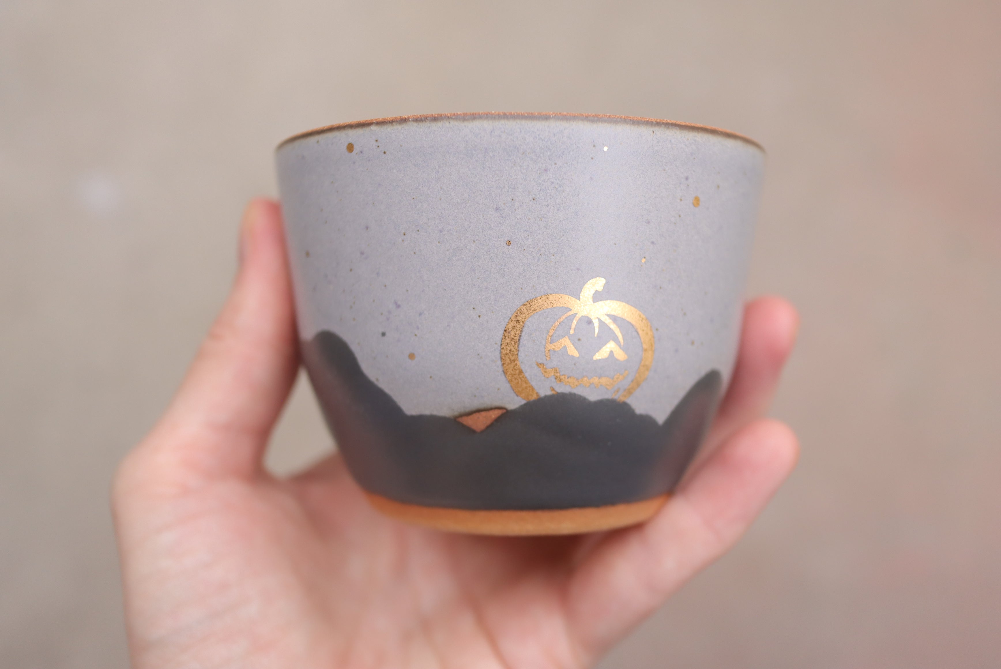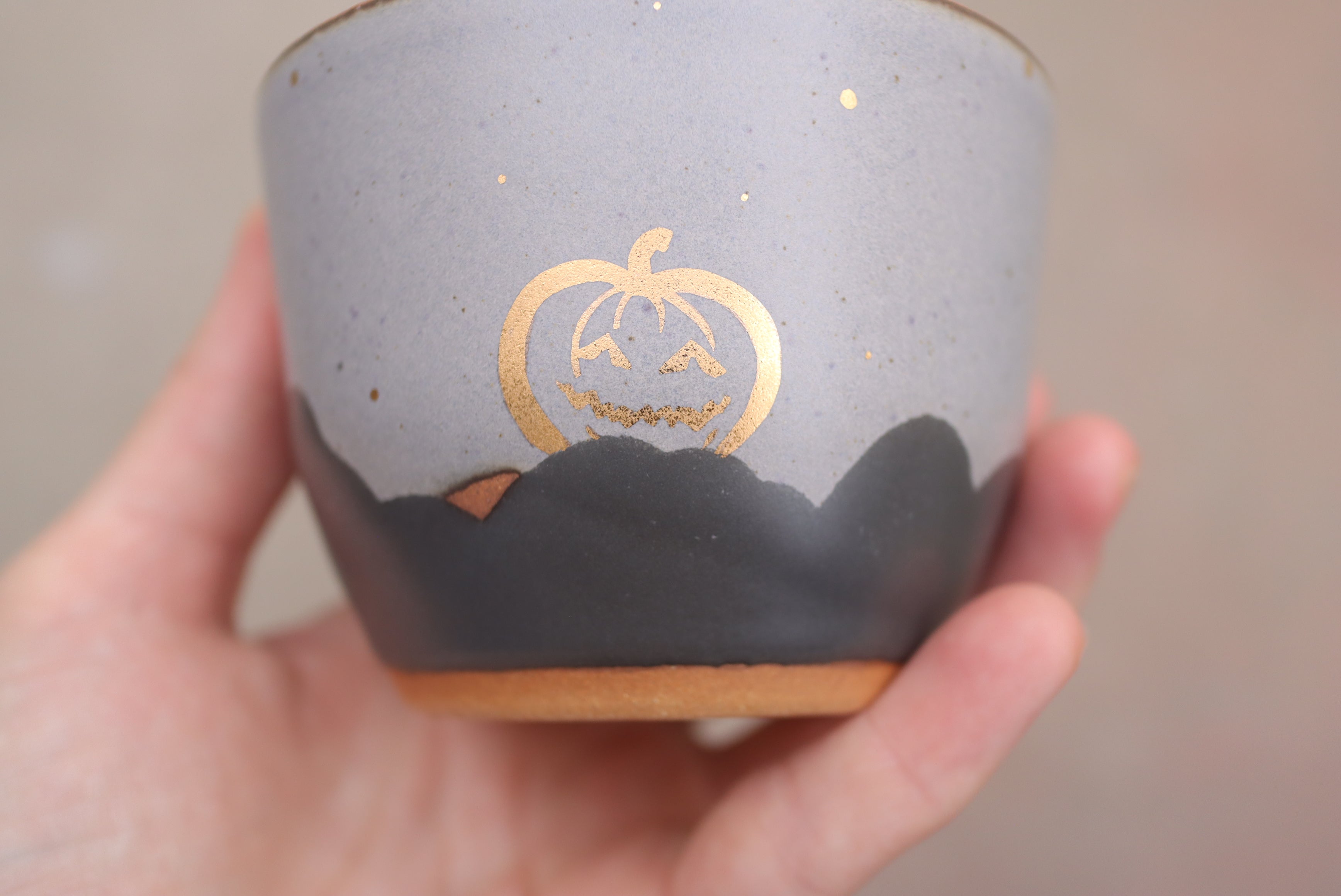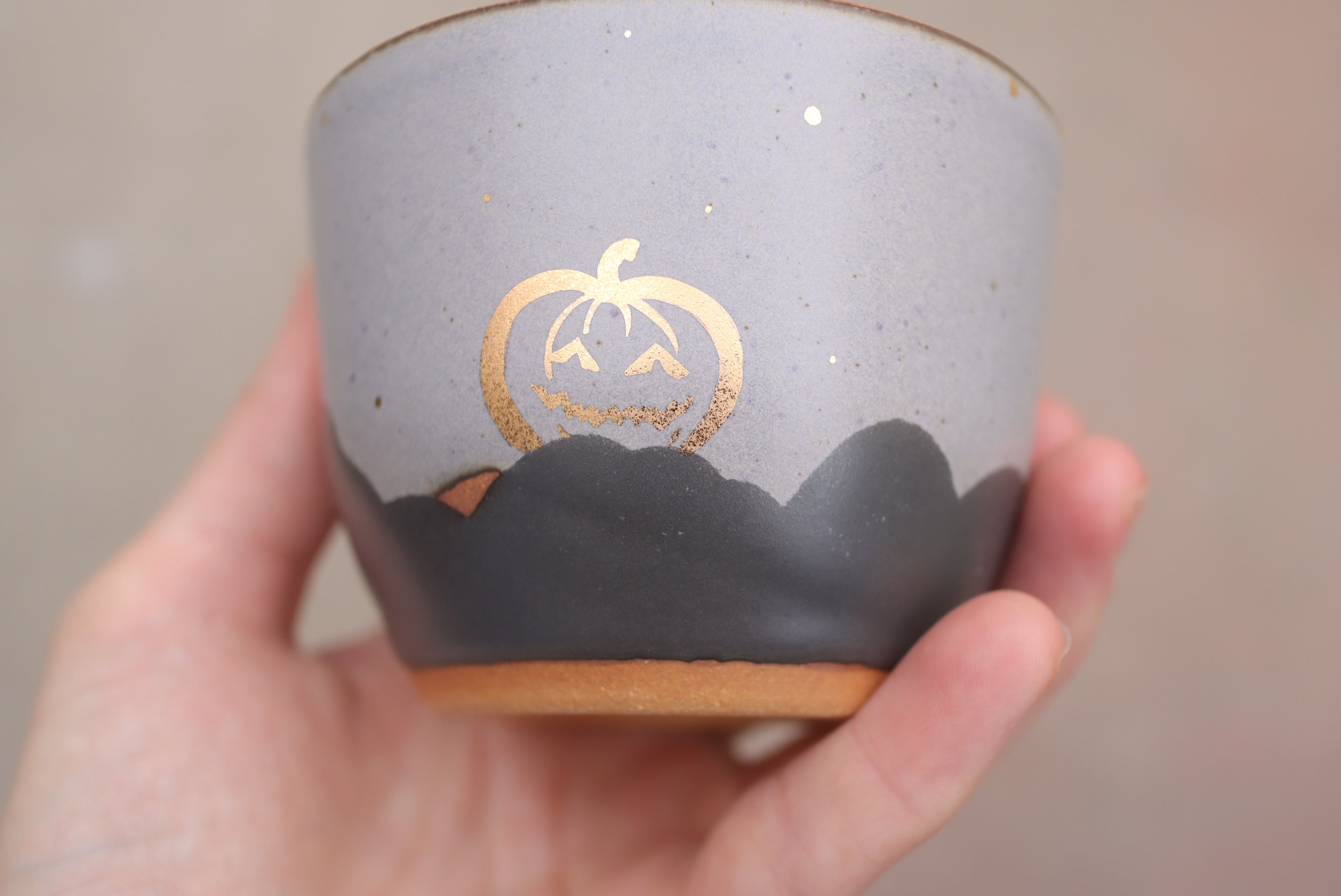 6 oz Cappuccino Shadow Mist Cup with Hand Painted 22k Gold Lustre Pumpkin