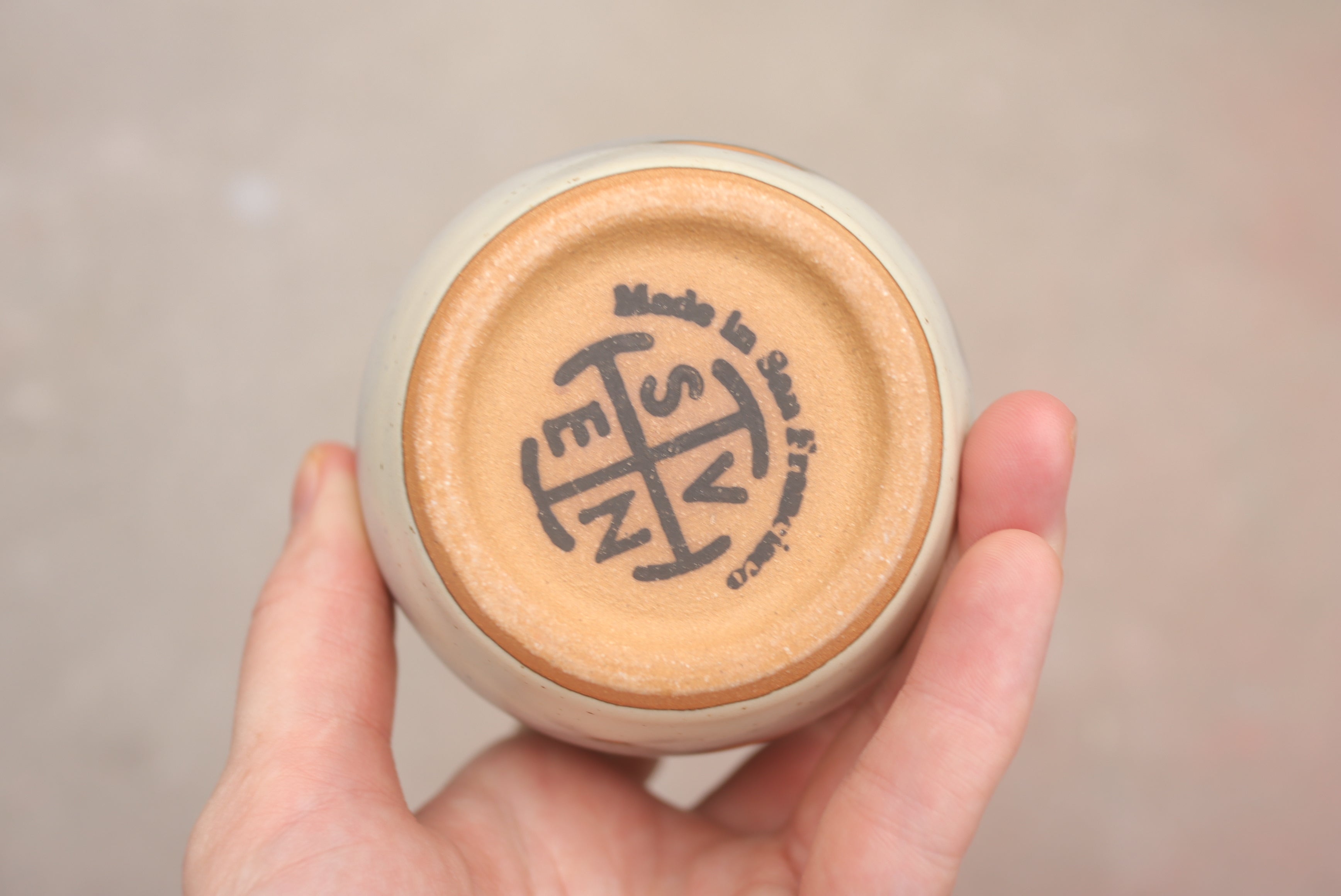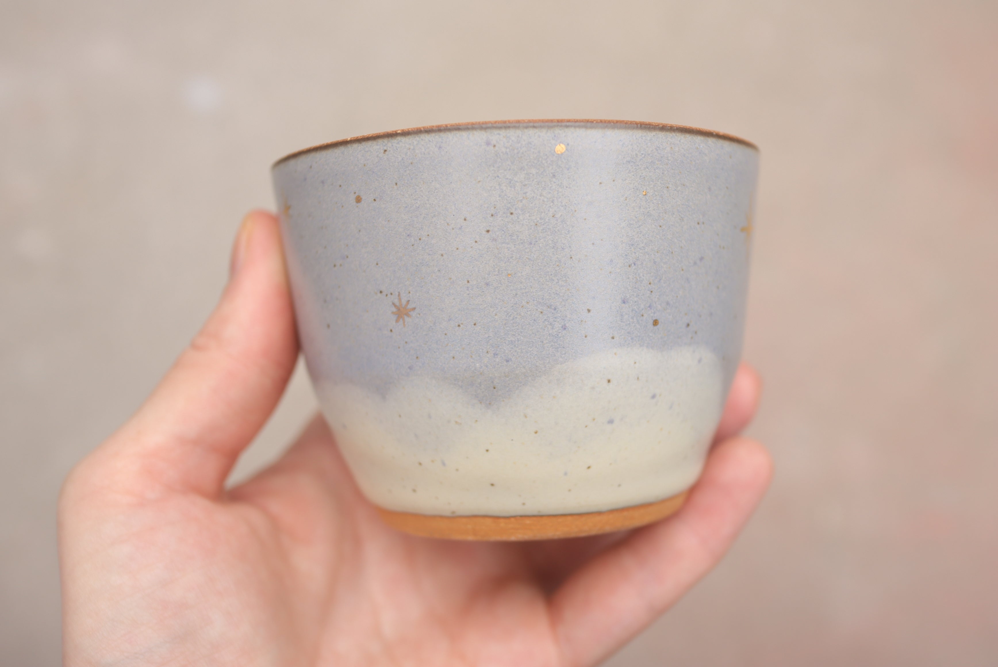 All cups are handmade and have variations in shape, color, and glaze pattern. Small variations are to be expected: a tiny dimple in the glaze, or a little spot of the secondary color on top of the primary color is not considered seconds.
