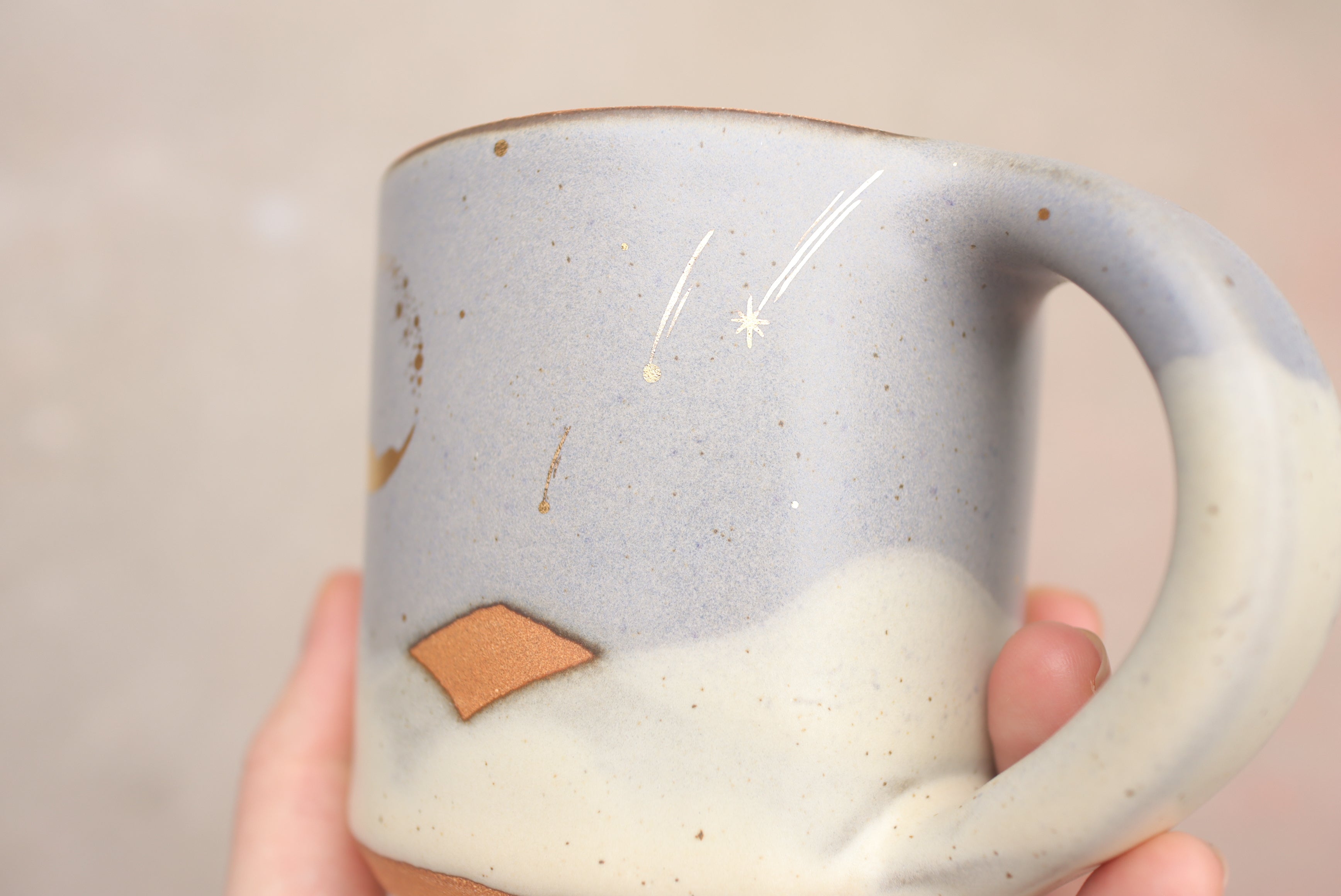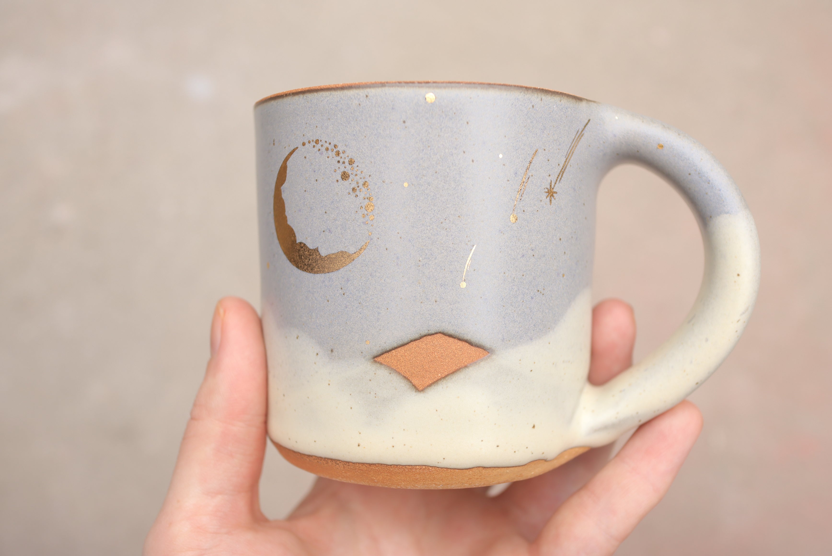 12 oz Classic Soapstone Mug with Hand Painted 22k Gold Lustre Crescent Moon and Moonshadow