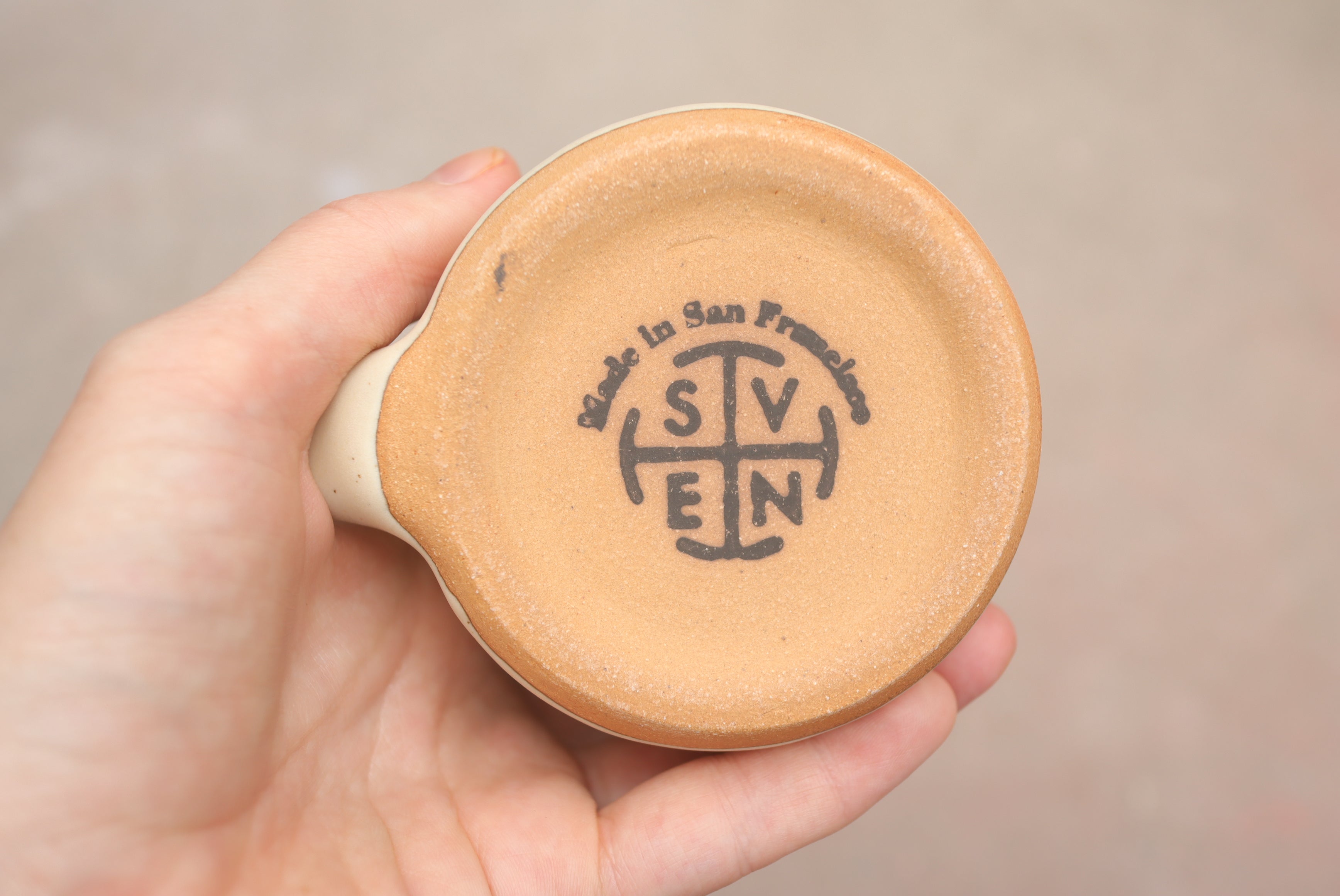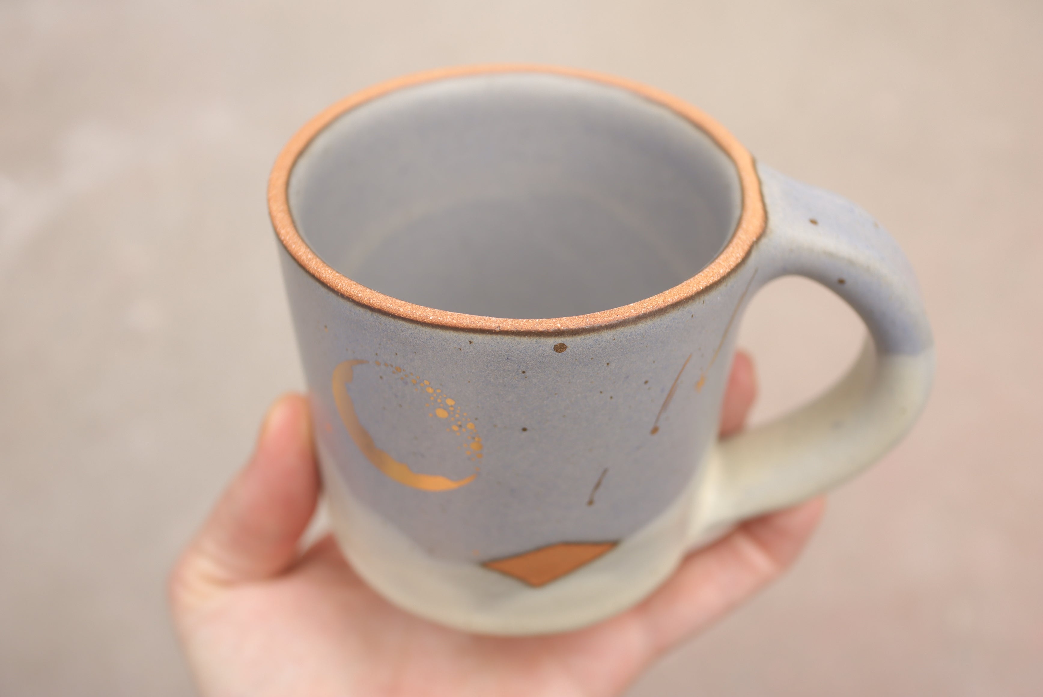 All cups are handmade and have variations in shape, color, and glaze pattern. Small variations are to be expected: a tiny dimple in the glaze, or a little spot of the secondary color on top of the primary color is not considered seconds.