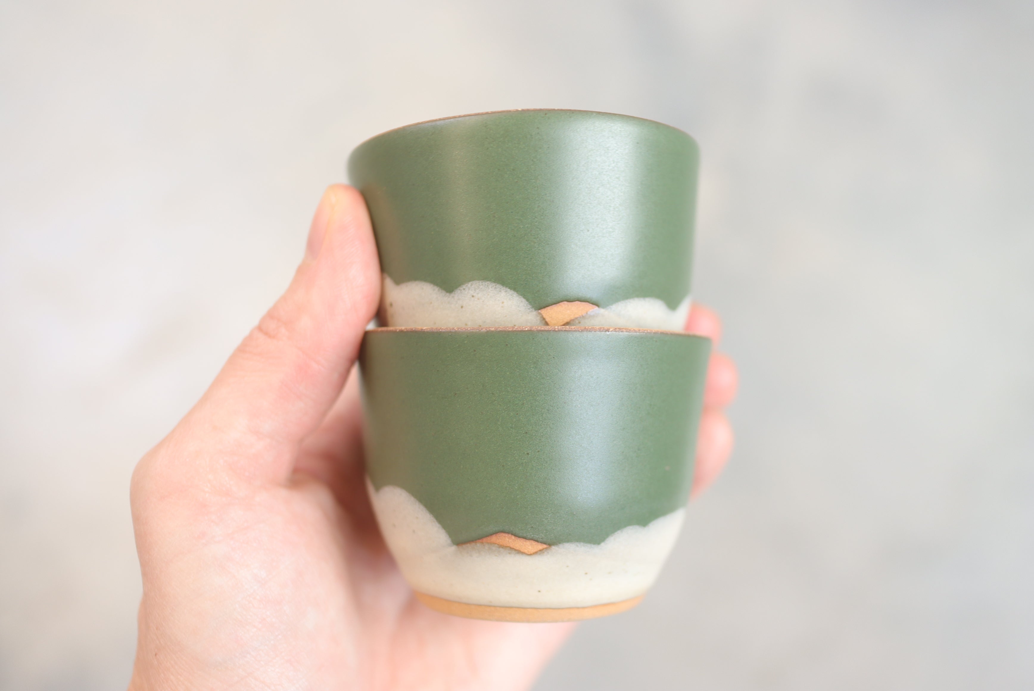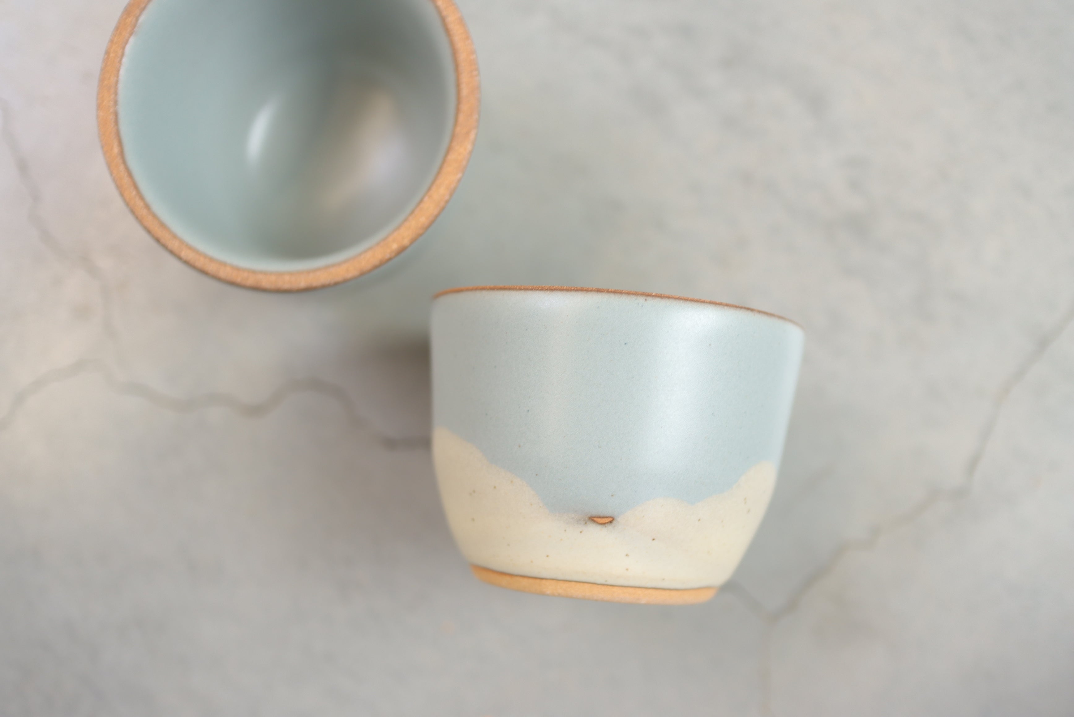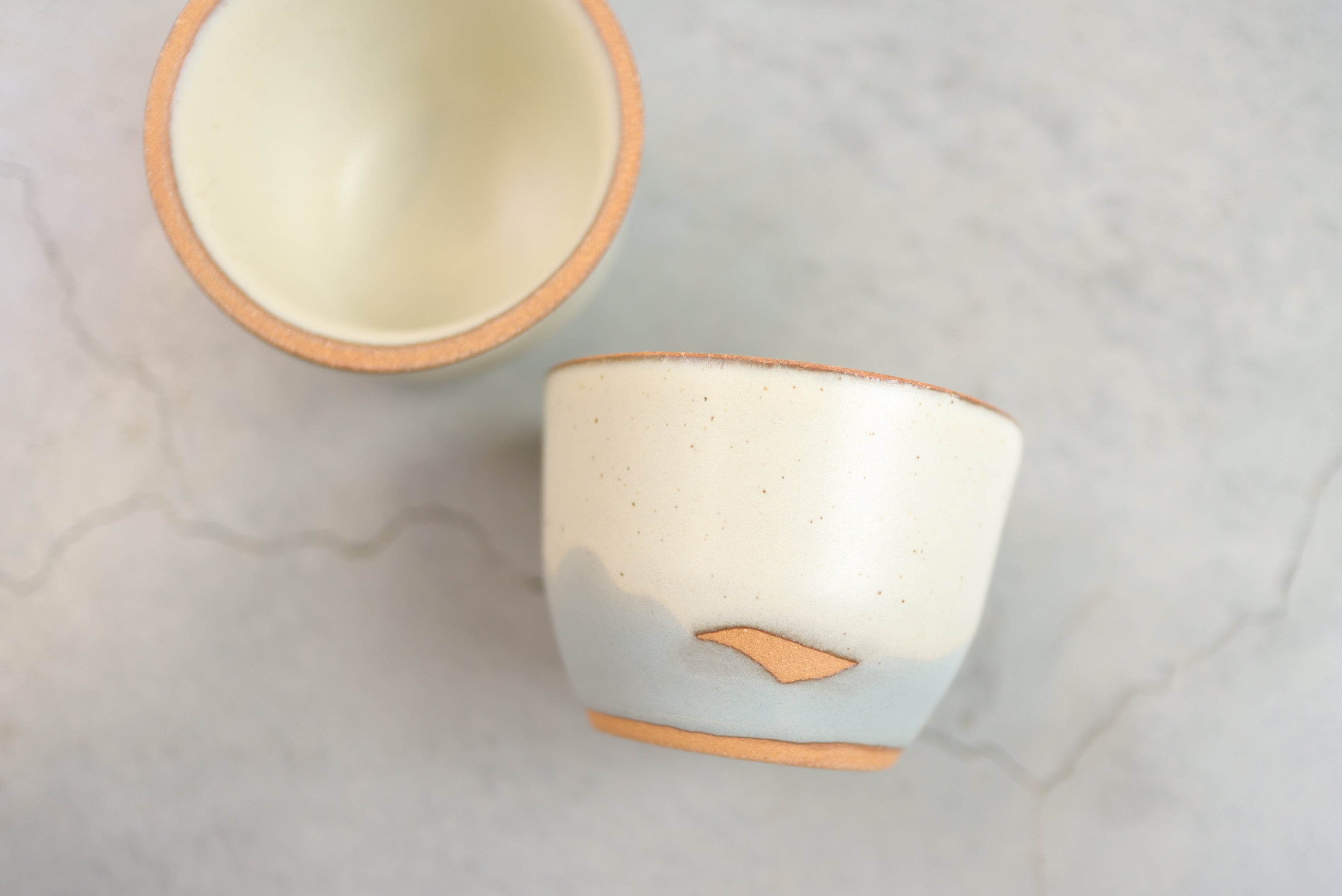 Glazed in our signature cloud design with two glaze colors, each cup will look unique. As all of our pieces are handmade, minor variations in shape and finish are normal. Small variations are to be celebrated for giving each piece it's own character, and are not considered imperfections.
