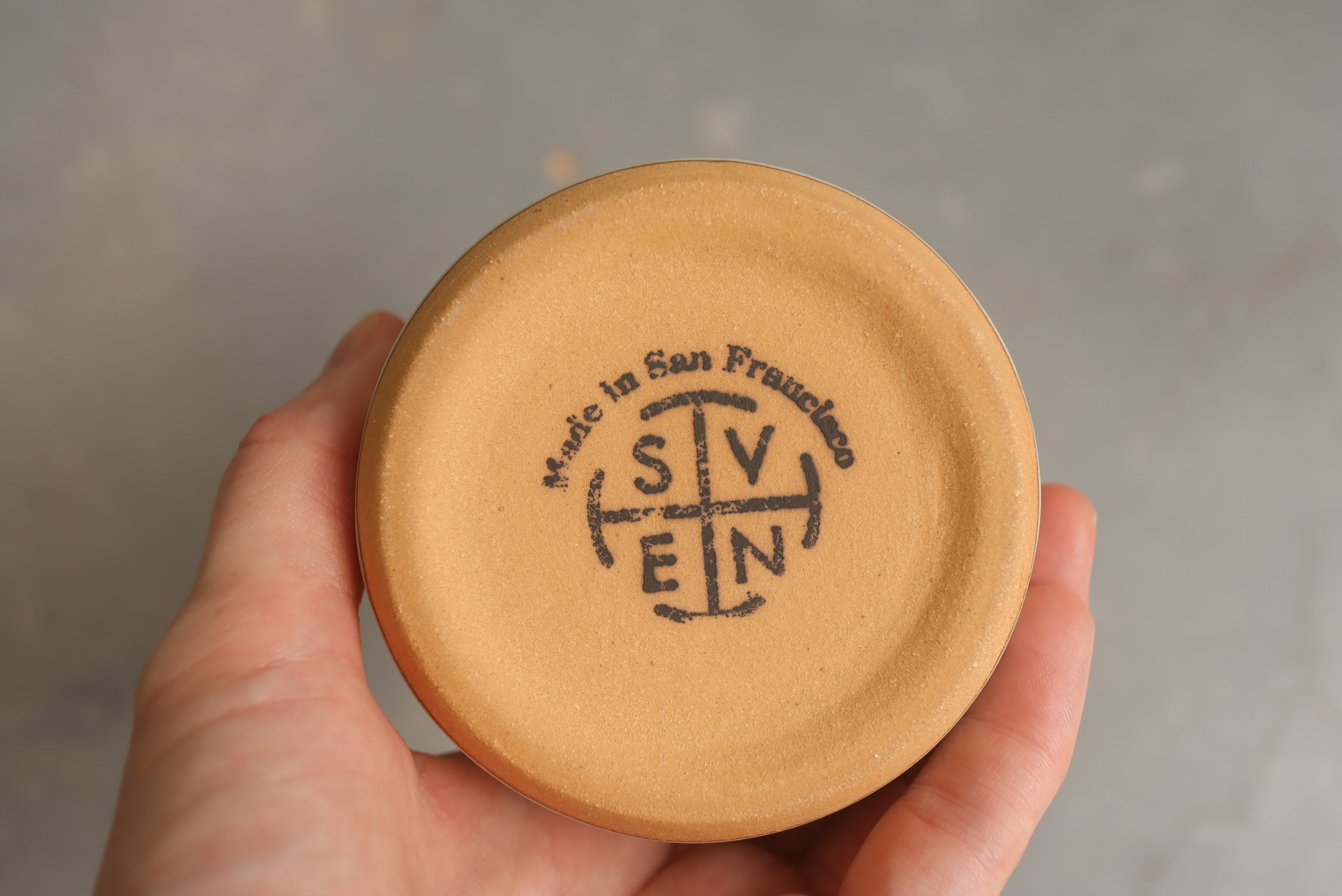 All of our pottery is made by the two of us in San Francisco. Our glazes are formulated and made in-house, using non-toxic ingredients. No lead has ever been used in any of our glazes, nor in our equipment.