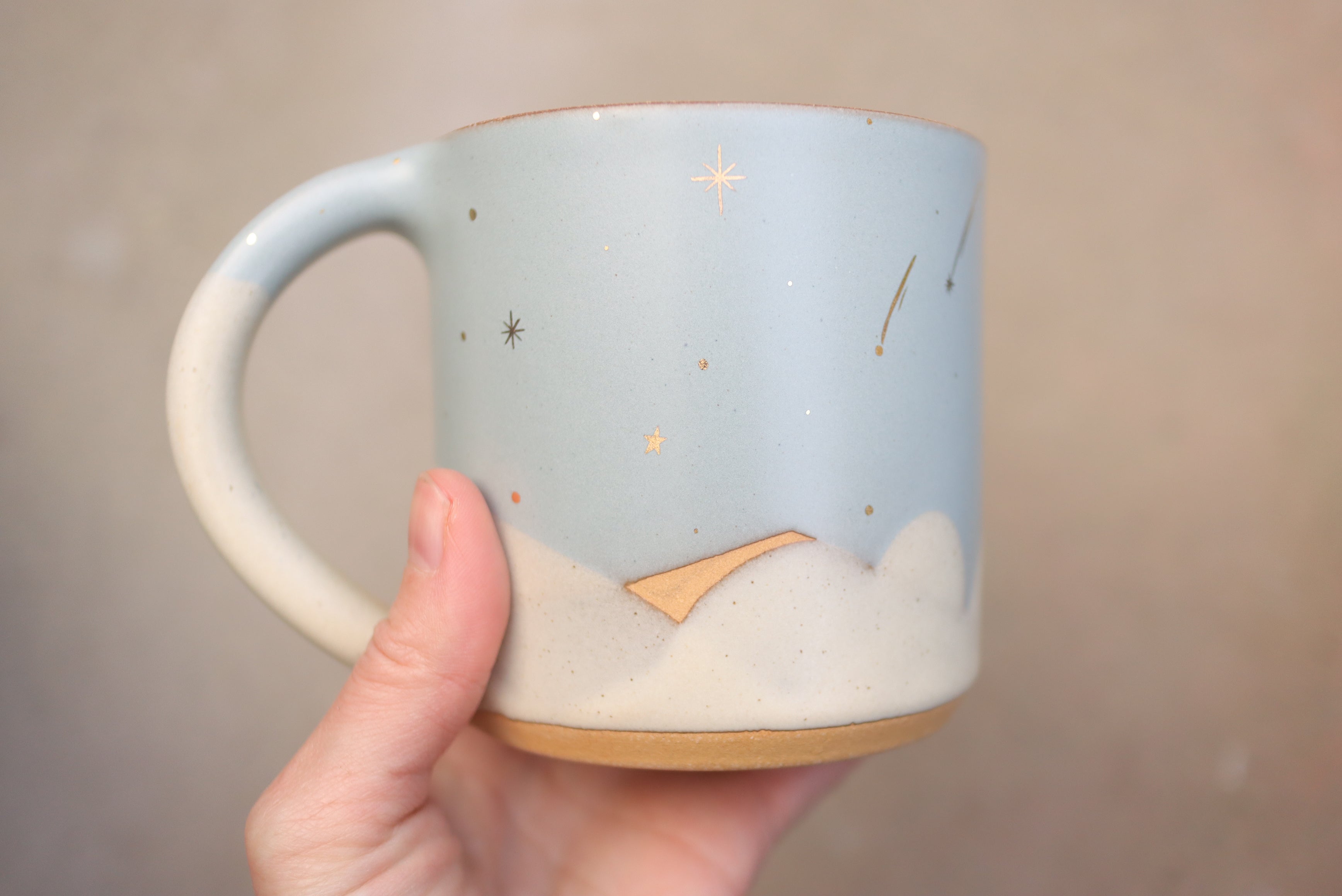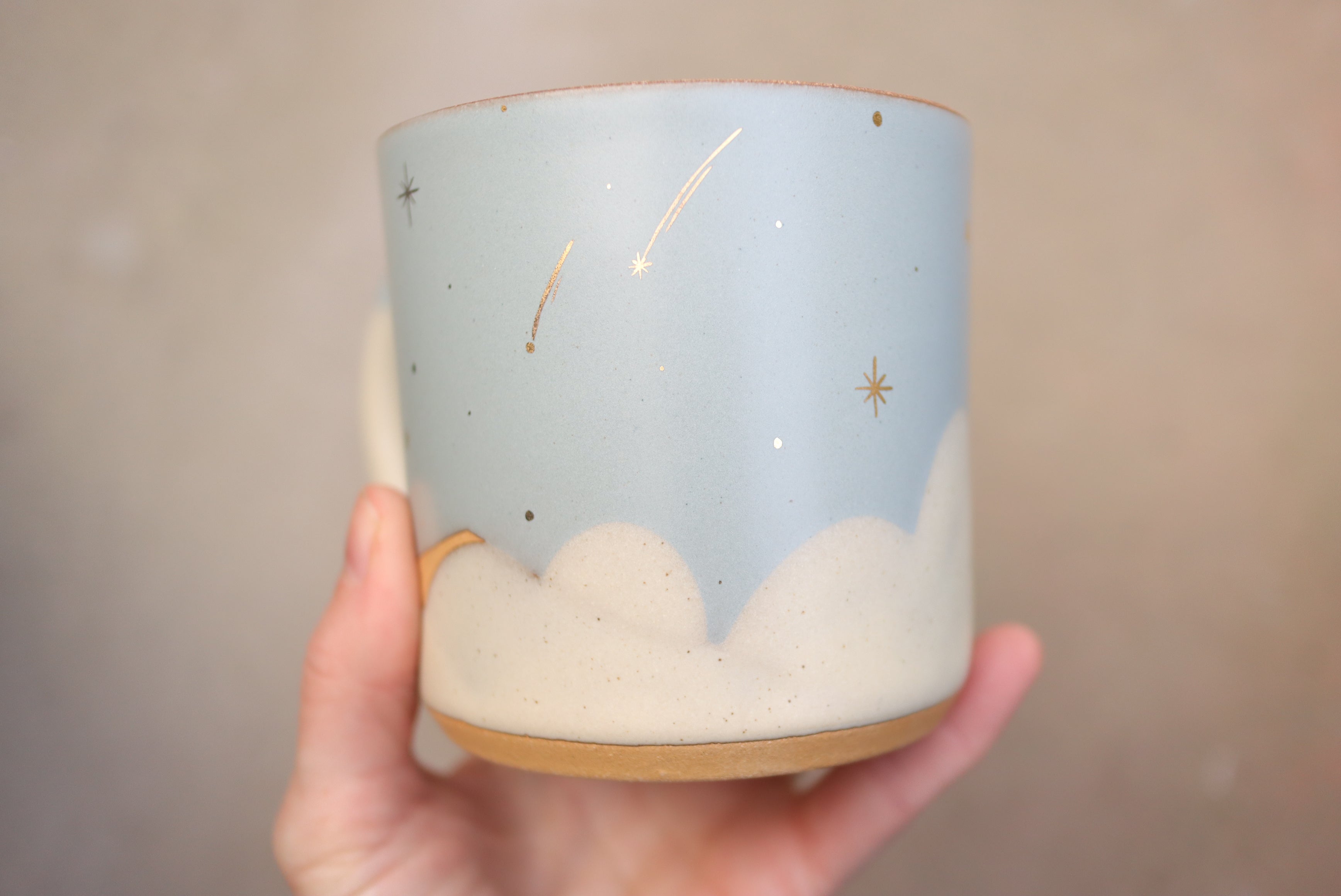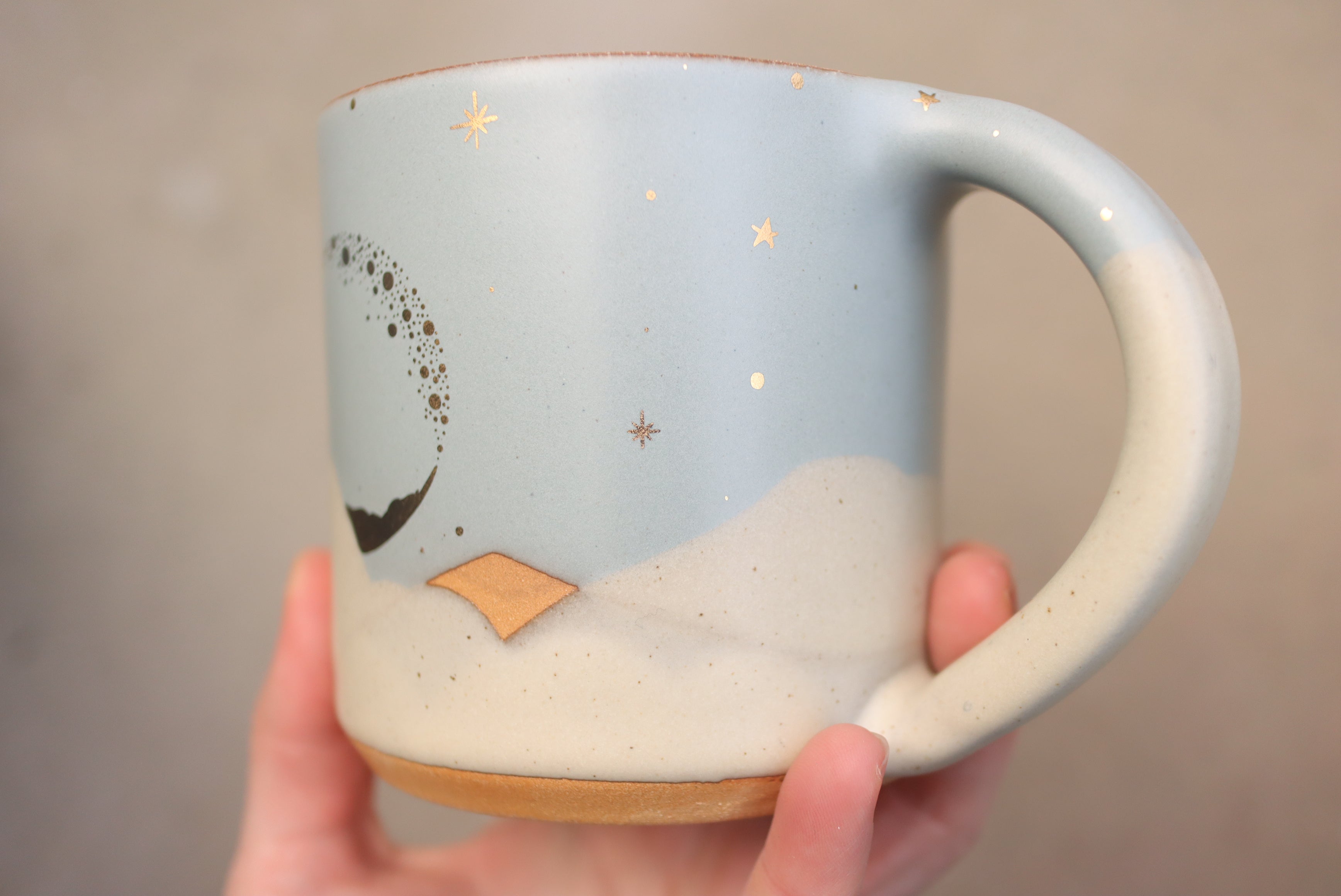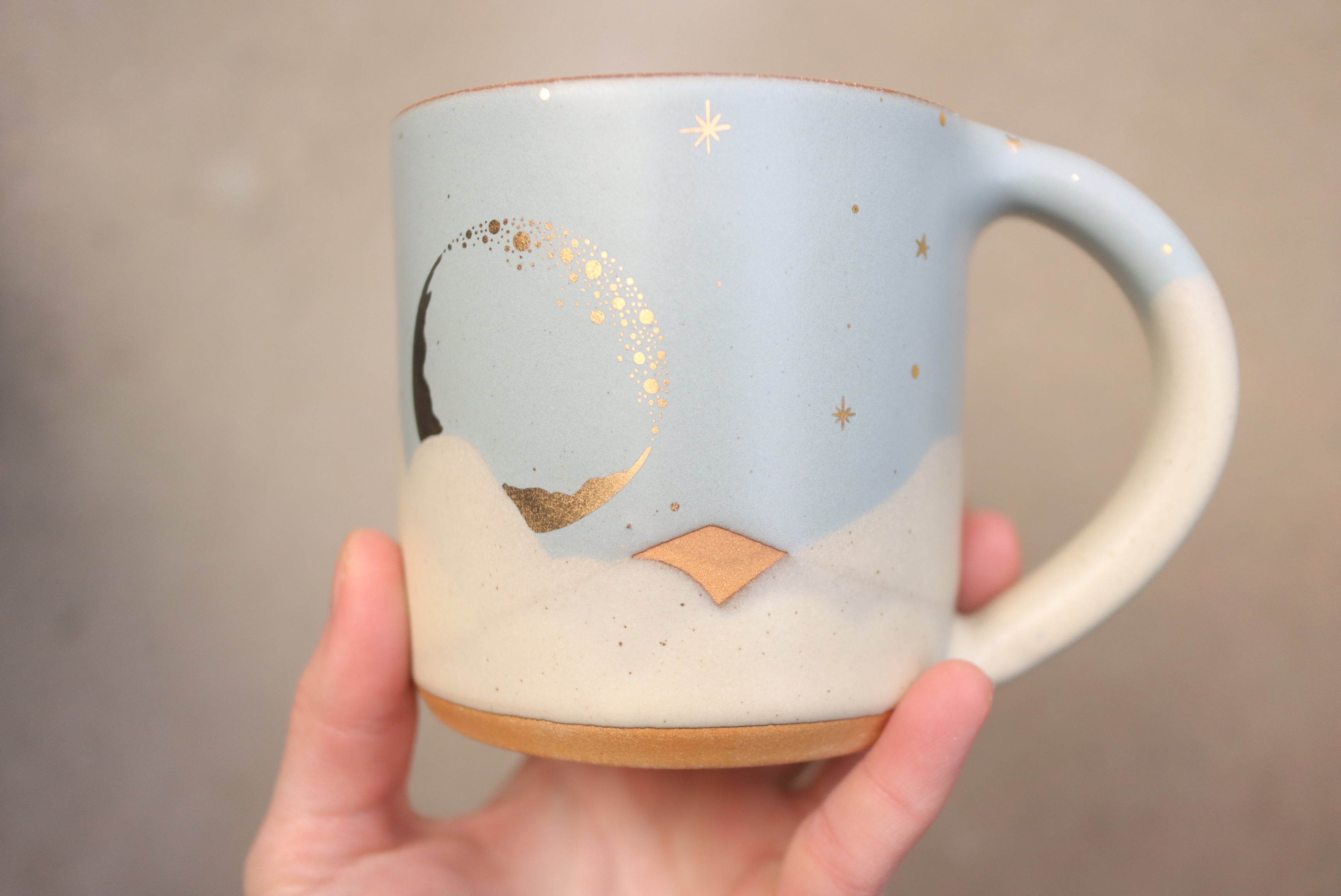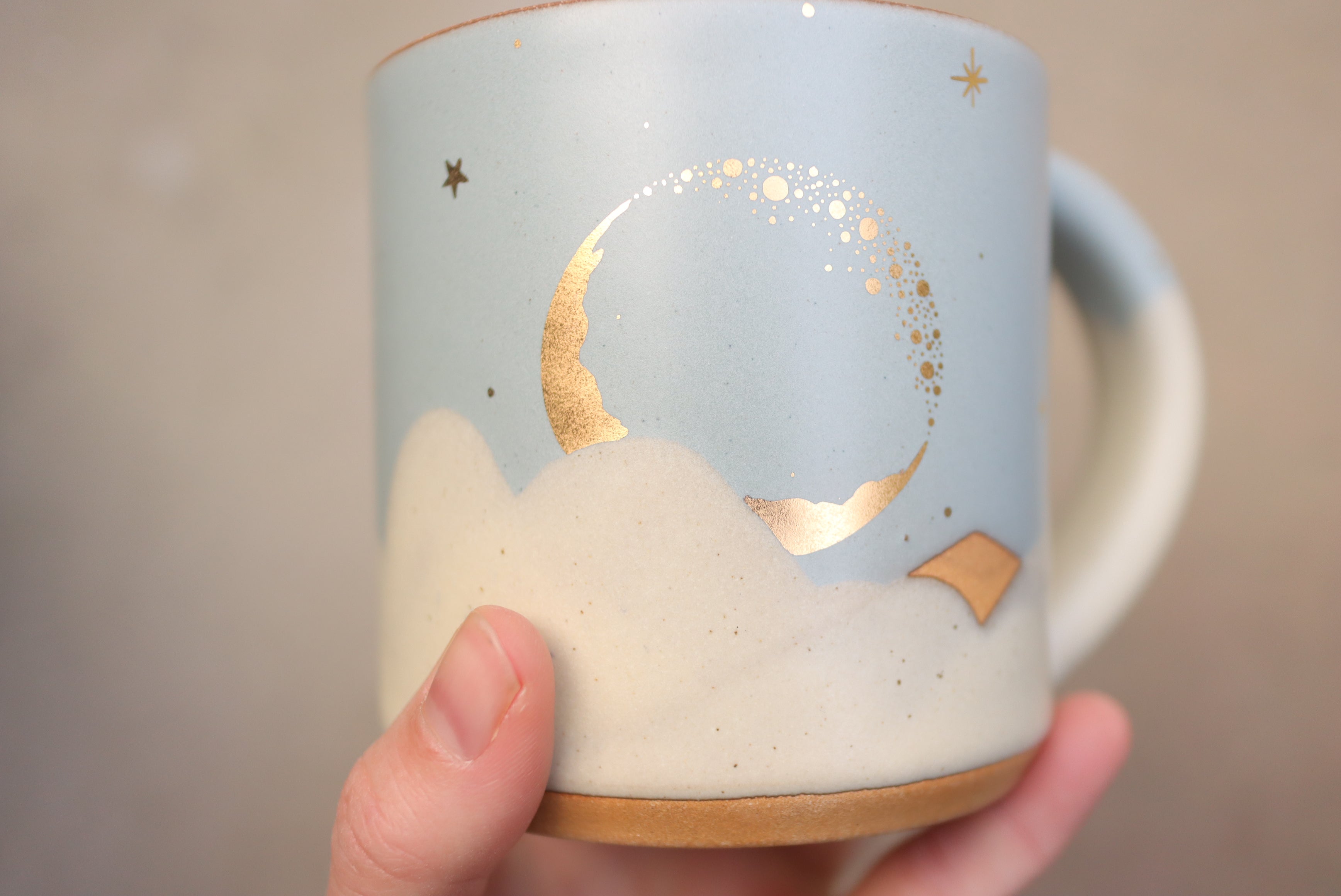 18 oz Dream Mug with Hand Painted 22k Gold Lustre Crescent Moon and Moonshadow