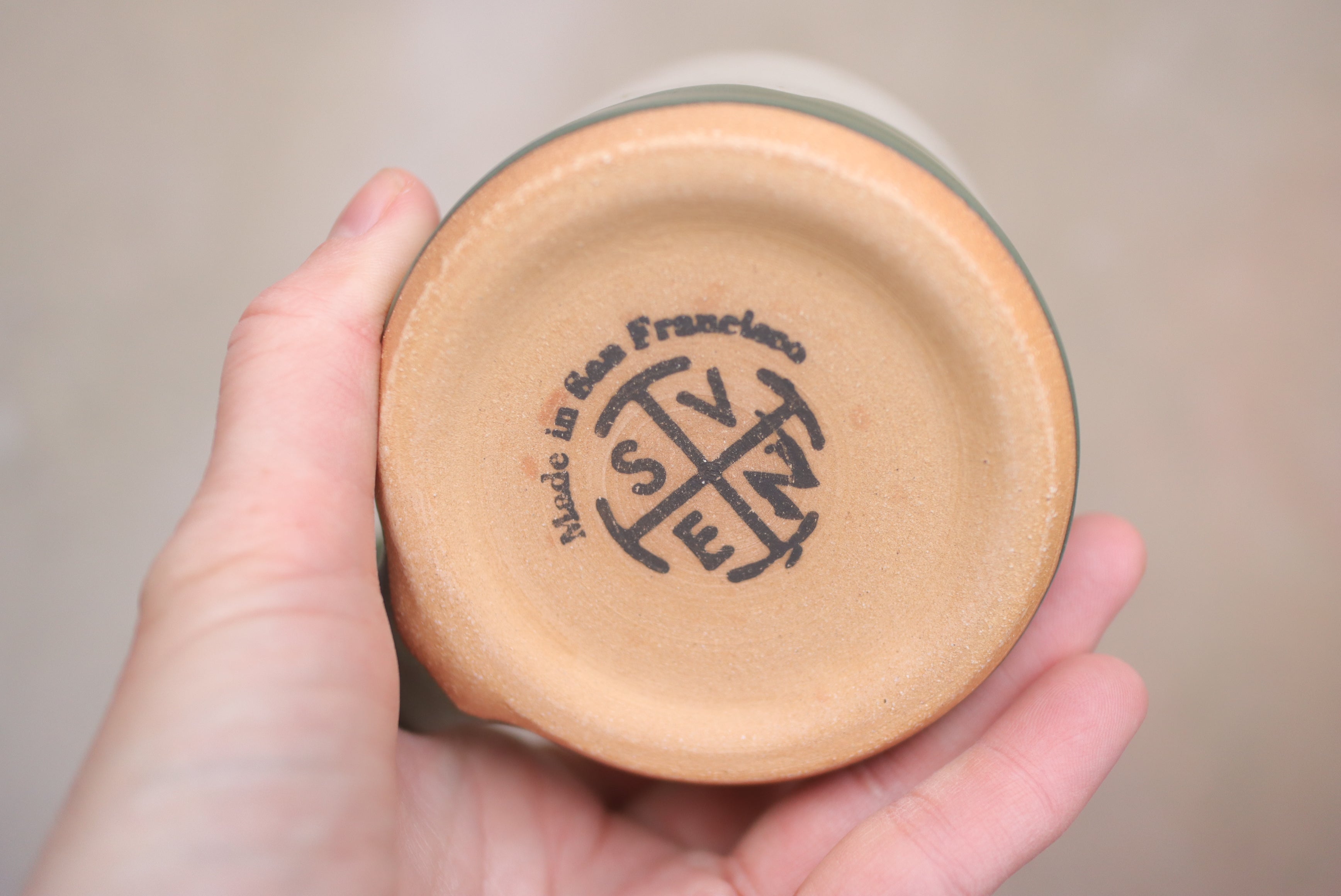 All of our pottery is made by the two of us in San Francisco. Our glazes are formulated and made in-house, using non-toxic ingredients. No lead has ever been used in any of our glazes, nor in our equipment.